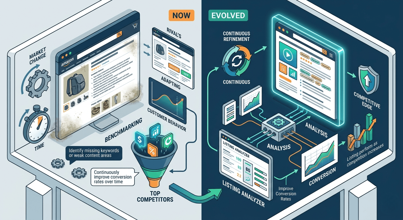 Even a well-built listing needs continuous refinement. Markets change, competitors adapt, and customer behavior evolves.