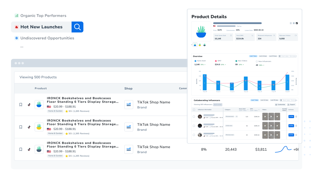Success on TikTok Shop is rooted in creator-driven commerce. Influencer Finder helps sellers zero in on the right voices — filtering by engagement, niche, and performance — so partnerships resonate with audiences and drive conversions. Influencer discovery is now streamlined and data-backed.